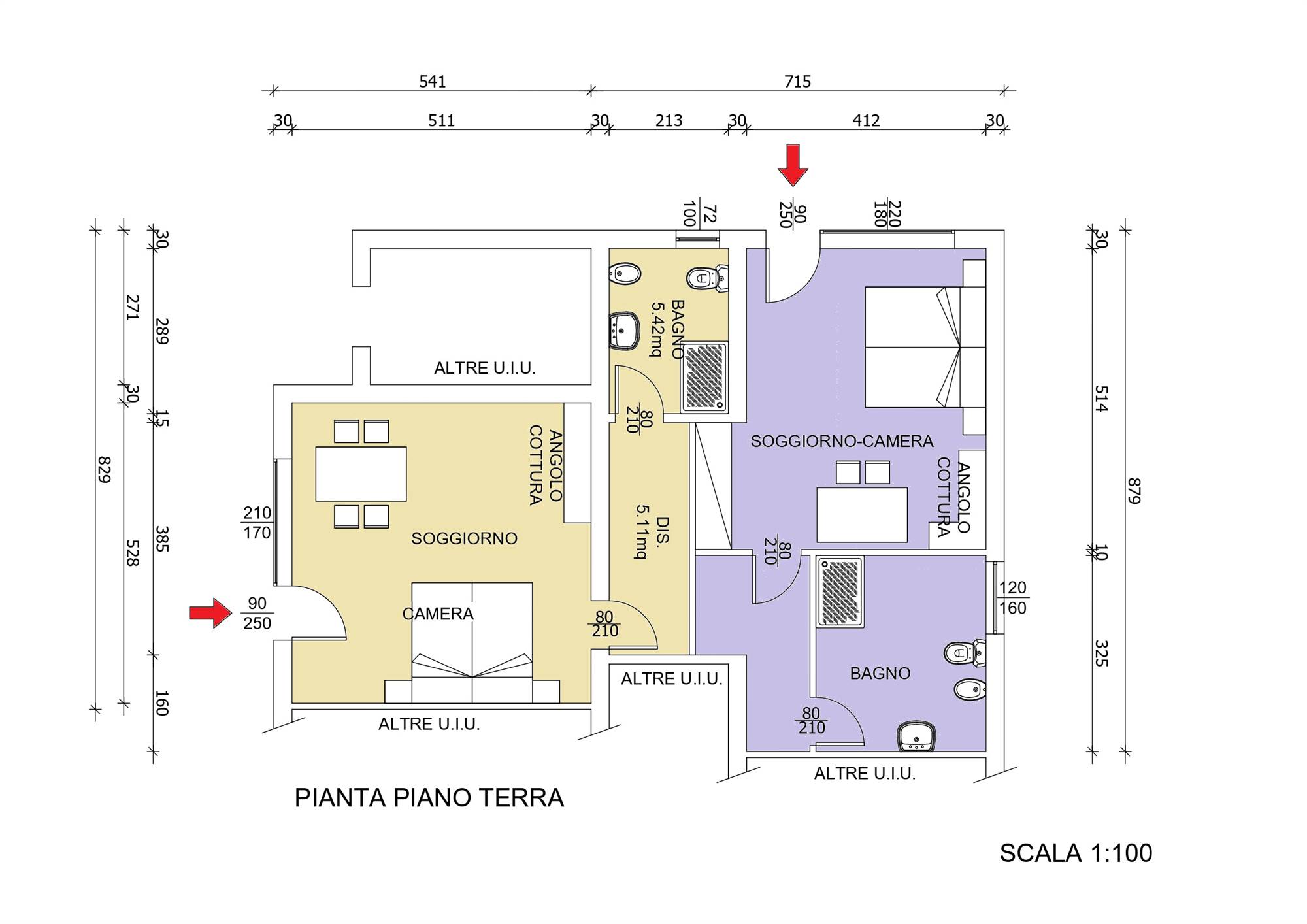 Situati al piano terra si compongono di ingresso indipendente, un unico ambiente da adibire a soggiorno con ang. cottura e camera, un comodo disimpegno e un ampio bagno finestrato con doccia, completo di tutti i servizi.