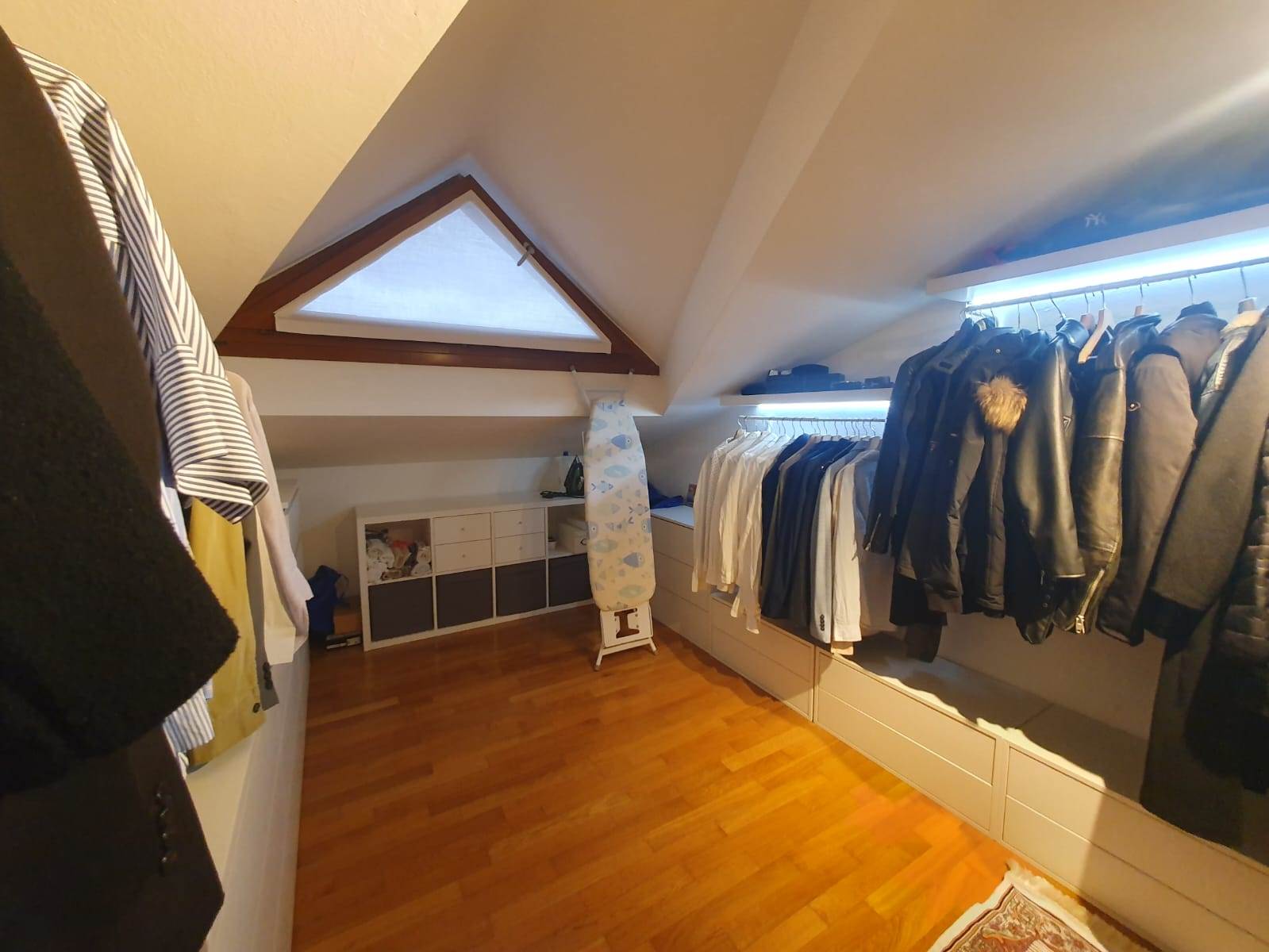 Dal soggiorno si accede al piano mansardato suddiviso in due camere da letto, una matrimoniale finestrata con terrazzo e una singola finestrata, un secondo bagno completo, sempre con doccia a servizio del reparto notte.
