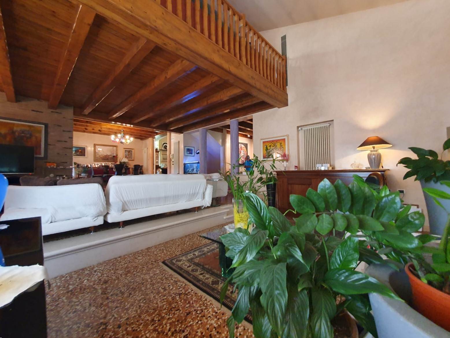 Dall'ingresso si accede ad una zona soppalcata di oltre 50 mq con una bellissima vista sulla zona giorno, ideale per realizzare una zona studio, una sala cinema, un ulteriore soggiorno o una camera ospiti.