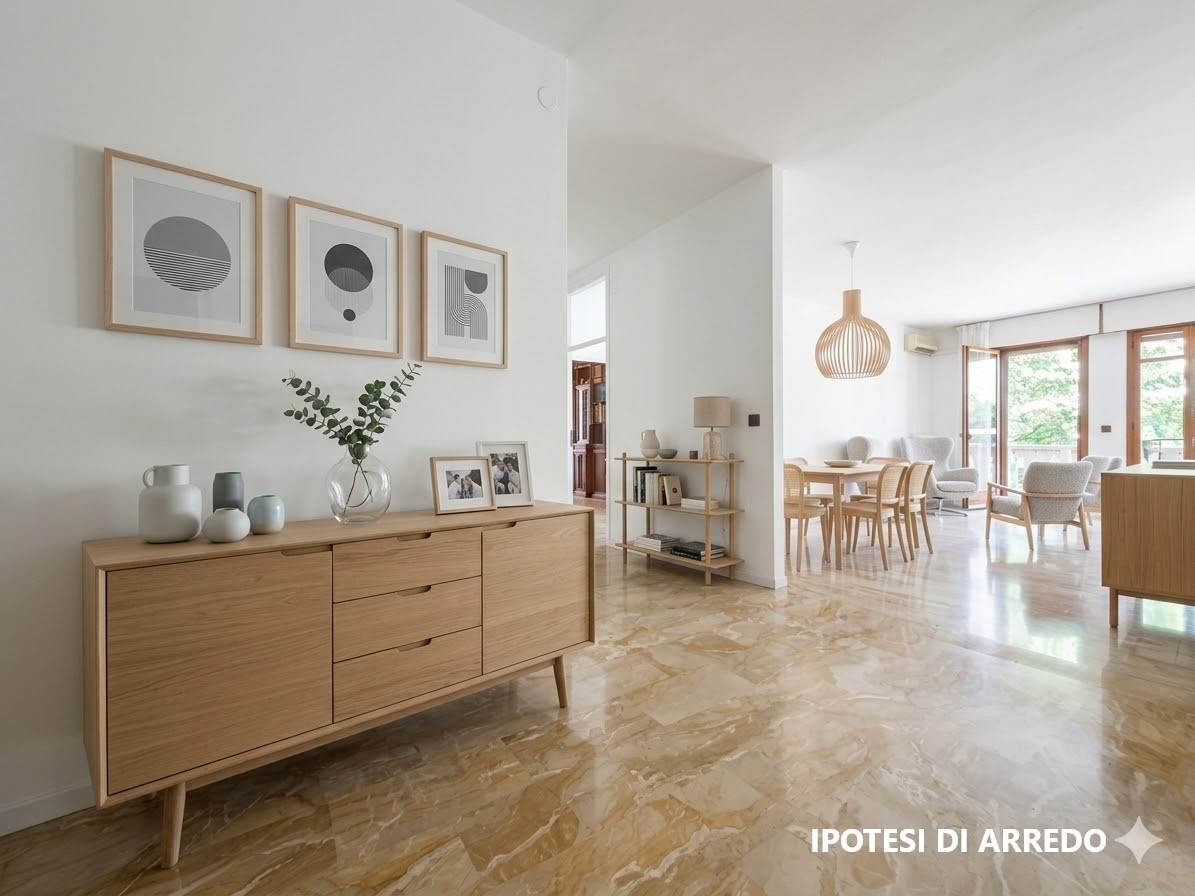 Anche il condominio è elegante e ben tenuto e dispone di un ampio giardino condominiale con alberi ad alto fusto che creano una vera oasi di pace dove trascorrere momenti all'aria aperta, perfetto anche per chi ha bambini o animali domestici.