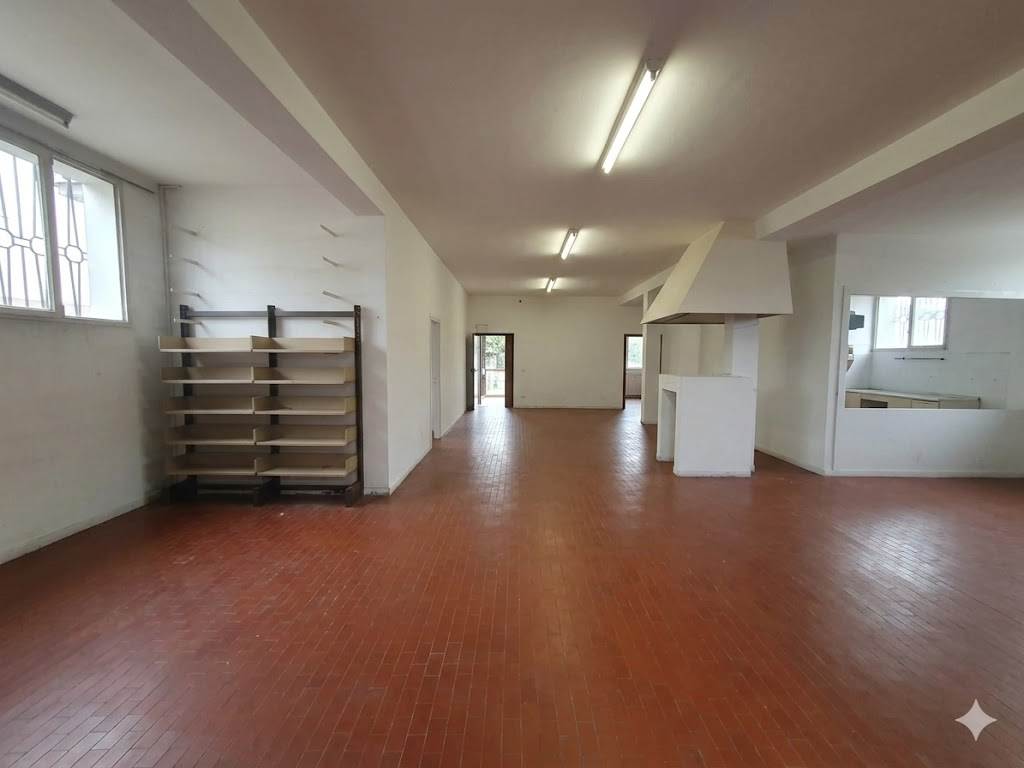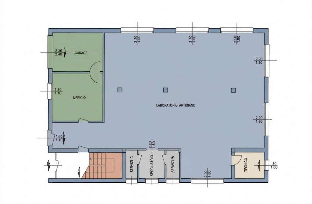 Il piano terra è completamente dedicato ad un'area artigianale con laboratorio, magazzino, bagni, spogliatoi, ufficio e garage per un'auto. Il primo piano invece ospita l'appartamento residenziale con accesso dal piano terra e si compone di un ampio ingresso, soggiorno con caminetto, cucina abitabile, tre camere da letto, studio, due bagni, poggiolo sulla facciata e un ampio terrazzo sul retro.