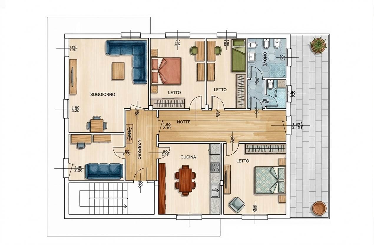 Questa casa, con la sua ampia metratura, si presta a più opzioni: