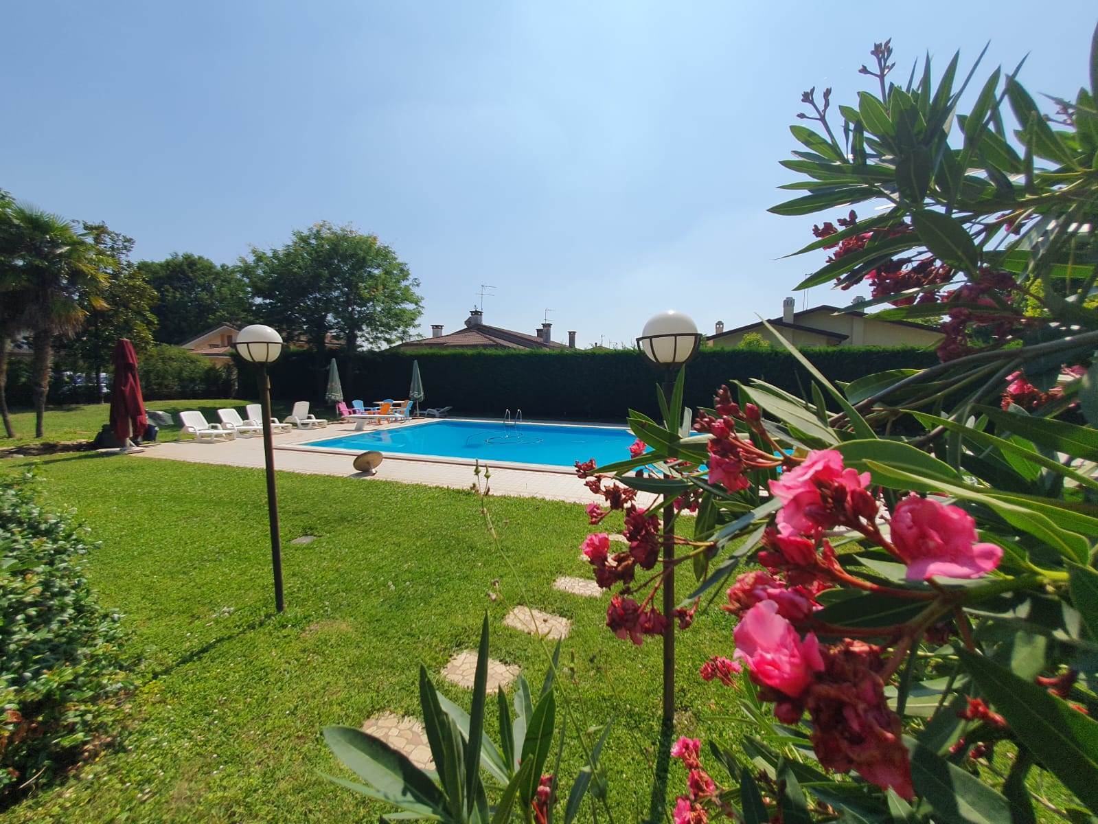 All'esterno, un ampio giardino di 2400 mq circonda la casa, offrendo spazi verdi dove rilassarsi e godere della pace e della tranquillità del luogo e la privacy è garantita da una recinzione con sovrastante siepe avente altezza di circa 3,5 mt. Una comoda piscina di oltre 130 mq permette di rinfrescarsi nelle calde giornate estive, mentre un ampio portico è l'ideale per pranzi e cene all'aperto con amici e parenti.