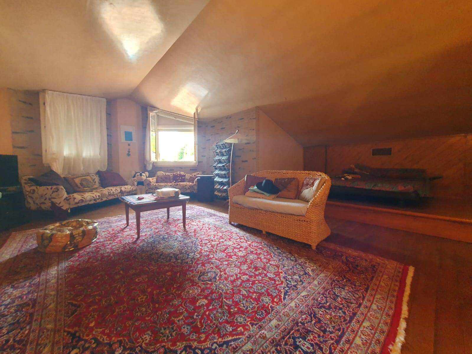 Dall'ingresso si accede ad una zona soppalcata di oltre 50 mq con una bellissima vista sulla zona giorno, ideale per realizzare una zona studio, una sala cinema, un ulteriore soggiorno o una camera ospiti.