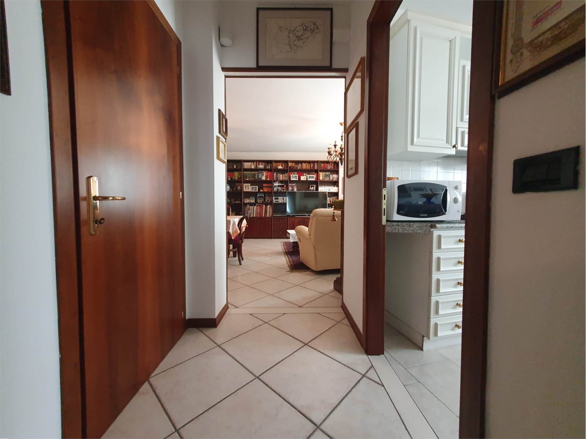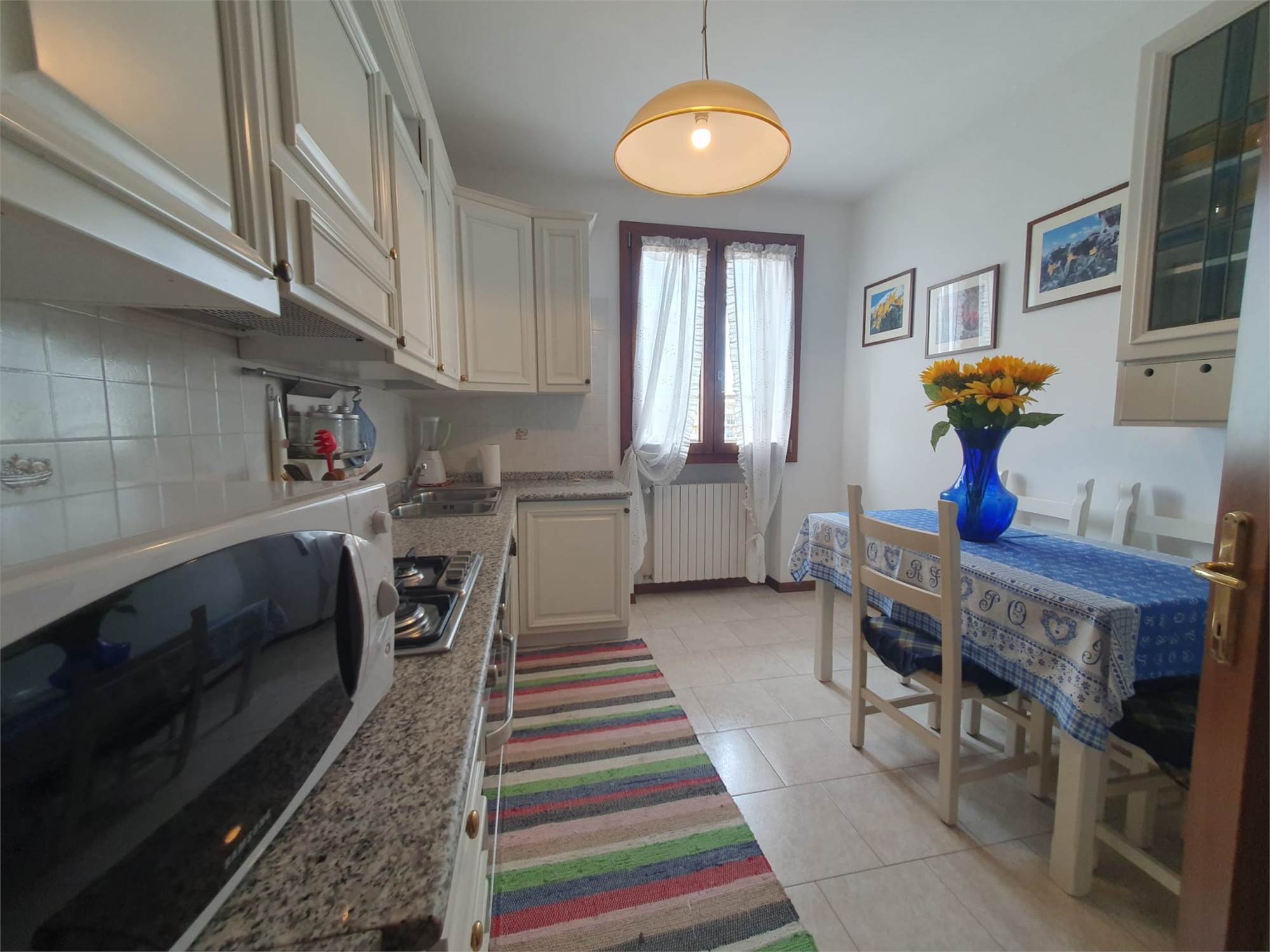 L'ingresso conduce alla spaziosa zona giorno, caratterizzata da una luminosa sala da pranzo e un accogliente salotto con uscita su un poggiolo dal quale si gode una vista aperta; la cucina è separata dal resto degli spazi è ha una metratura abitabile.