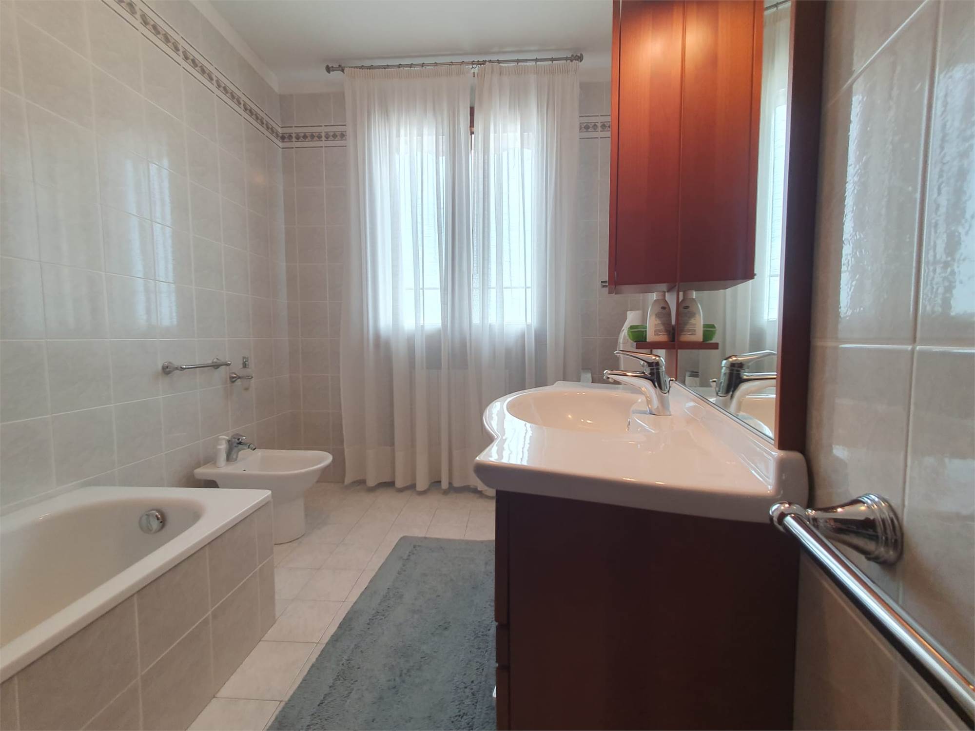 La zona notte è composta da due camere da letto, una matrimoniale e una doppia, entrambe di generose dimensioni e con poggiolo di pertinenza, due bagni, uno finestrato con vasca e uno cieco con doccia e un comodo ripostiglio.