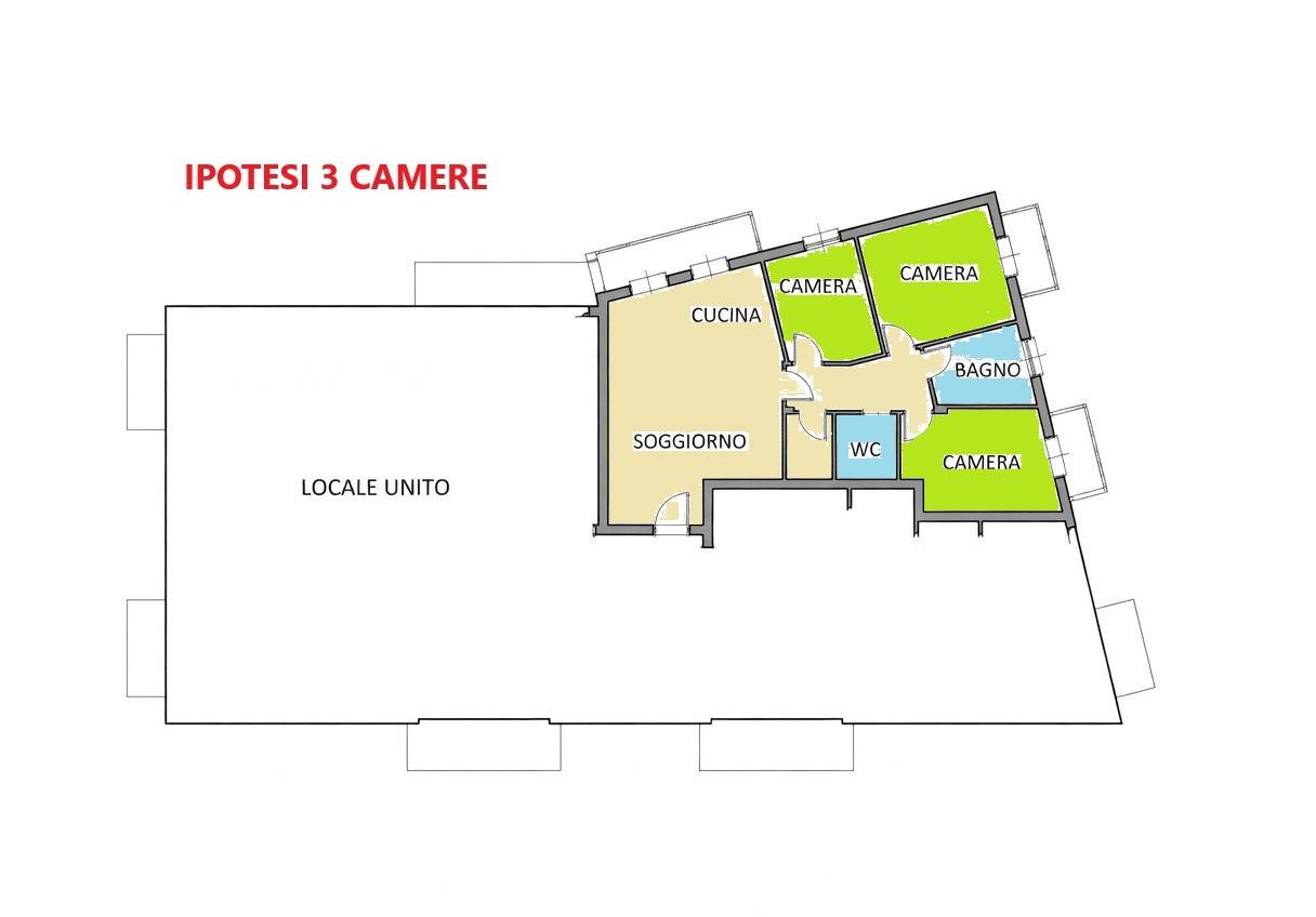 Possibilità di creare l'angolo cottura nella grande sala e avere così 3 camere da letto.