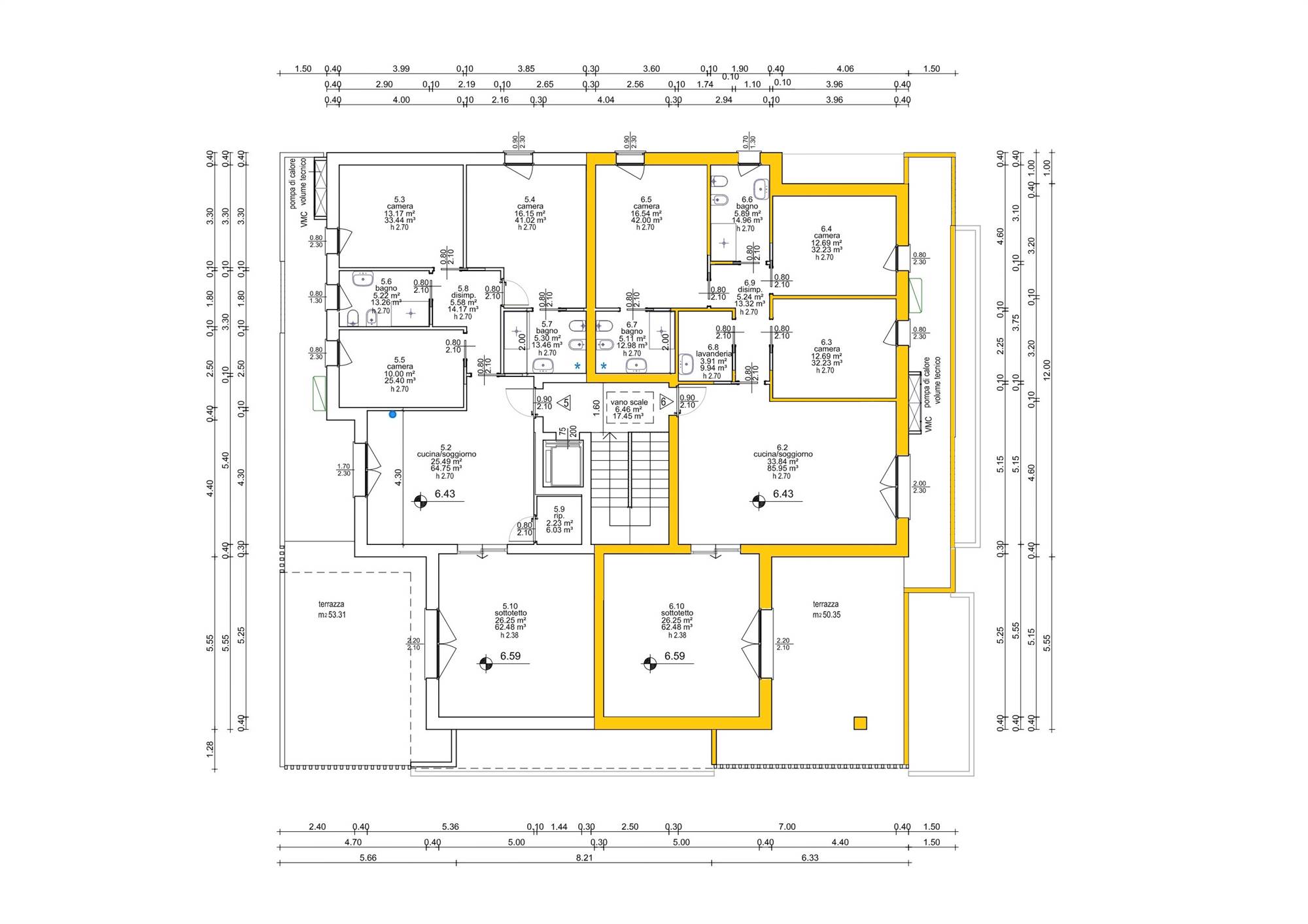 La zona living ha una superficie di 60 mq e si suddivide in un soggiorno ampio e accogliente, ideale per trascorrere piacevoli momenti in compagnia e una cucina separata, altrettanto spaziosa. Punto di forza di questo appartamento è il terrazzo di 50 mq, ideale per piacevoli momenti all'aperto.
